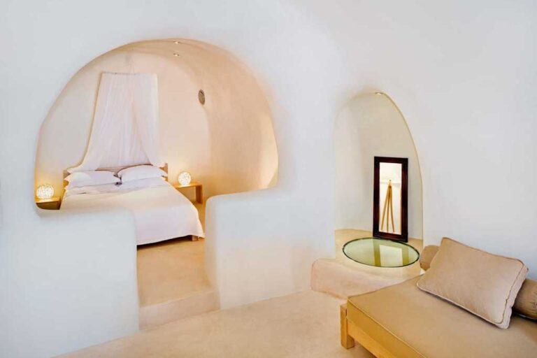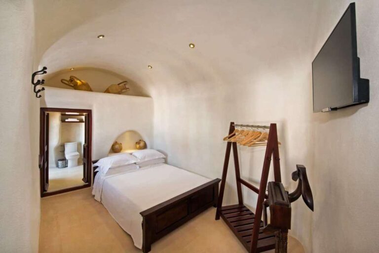 The building is divided into two floors, in two independent houses sharing a large Terrace, overlooking the houses of the village, the vineyards of Oia and the Aegean Sea. Some of private corners of terrace are used for sun bathing, reunions, quiet evenings and romantic dinners.